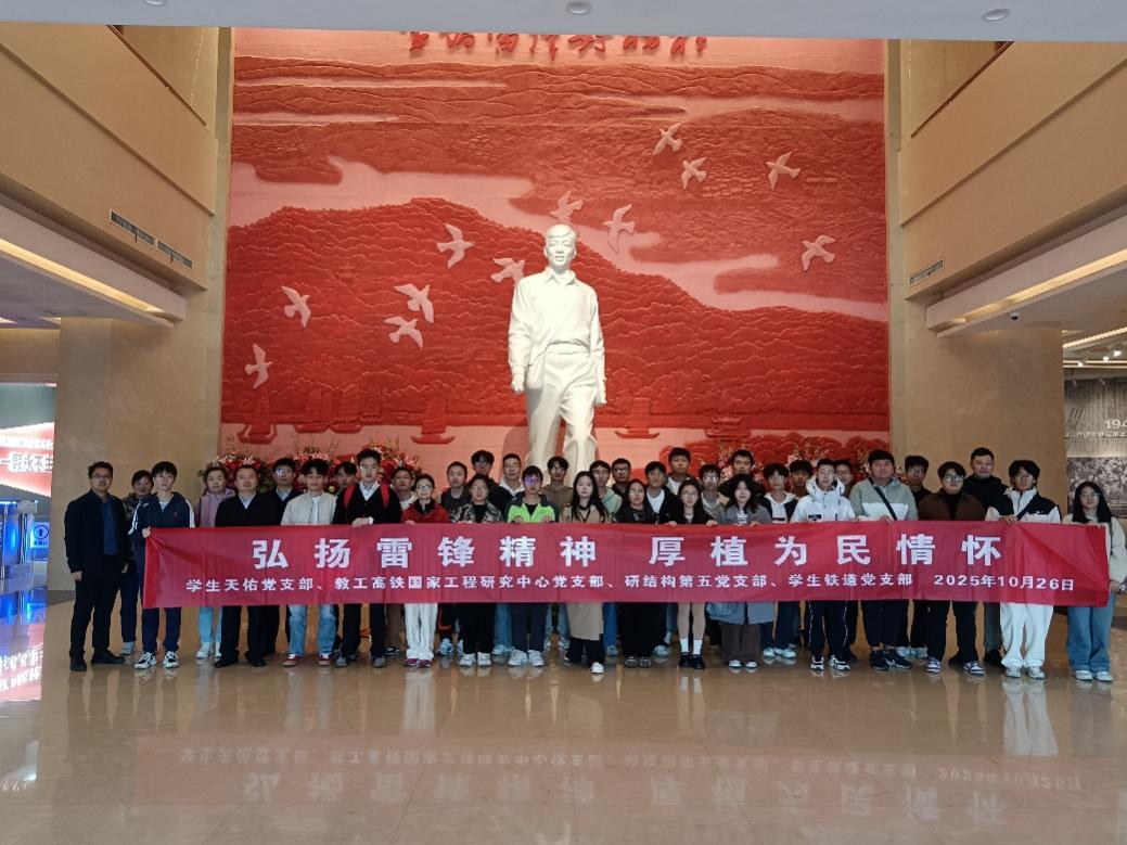 深入学习贯彻习近平新时代中国特色社会主义思想,贯彻落实中央八项规定精神,引导党员在重温红色记忆中淬炼过硬作风、在感悟榜样精神中践行初心使命,10月26日上午,伟德betvlctor国际官网学生天佑党支部、教工高铁国家工程研究中心党支部、研结构第五党支部、学生铁道党支部全体党员前往湖南雷锋纪念馆及湖南党史陈列馆,开展“严规肃纪葆本色,红色血脉践初心”主题党日活动学院党委副书记纪晓飞参加活动。