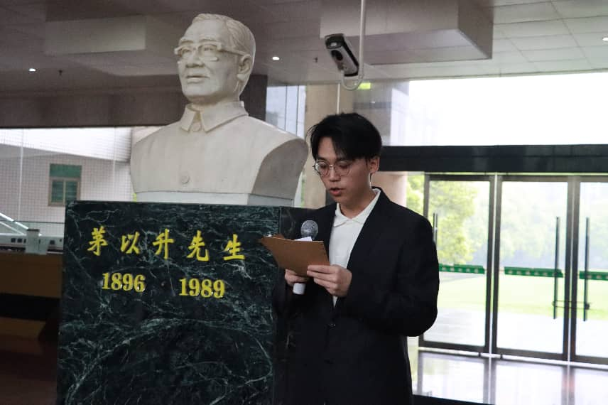 随后,学生代表在雕像旁发言,结合自身学习与生活实际,分享了对茅老精神品格的理解与感悟。该同学表示,作为新时代土木学子,应以茅以升先生为榜样,坚定理想信念,夯实专业基础,锤炼过硬本领;要把个人成长融入国家发展需要,在学习、科研和实践中践行“爱国、科学、奋斗、奉献”的精神内核,努力成长为堪当民族复兴重任的栋梁之才。