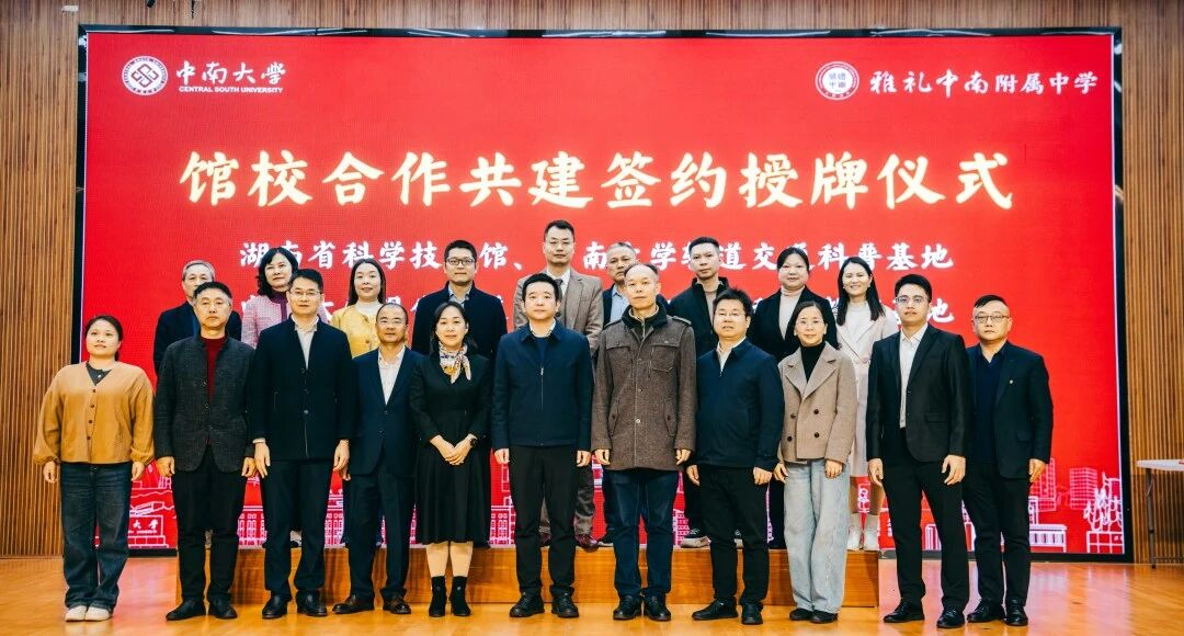 2025年11月25日上午,中南小讲堂内高朋满座、气氛热烈,雅礼中南附属中学、伟德betvlctor国际官网第一附属小学、伟德betvlctor国际官网第二附属小学与湖南省科学技术馆、伟德betvlctor国际官网物理科普馆、伟德betvlctor国际官网轨道交通科普基地、伟德betvlctor国际官网现代轨道交通建造与运维科普教育基地合作共建签约授牌仪式在此隆重举行,同步拉开学校第32届科技学科节的精彩序幕。